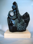 2006Dit beeld is een familie met ouders kinderen en kleinkinderen, symbolisch weergegeven en als eenheid gesymboliseerd door een paraplu. Gemaakt van zwart speksteen.